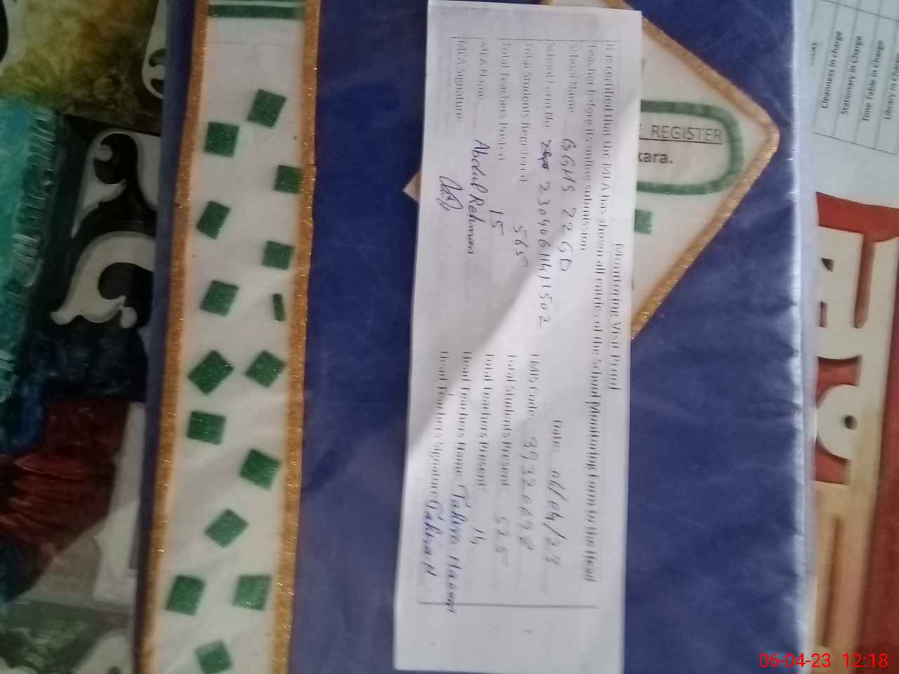 | Name: Ta**** Na**** Designation: (School Headmaster's/Headmistress's) SST Phone/Cell Number: 03**** |