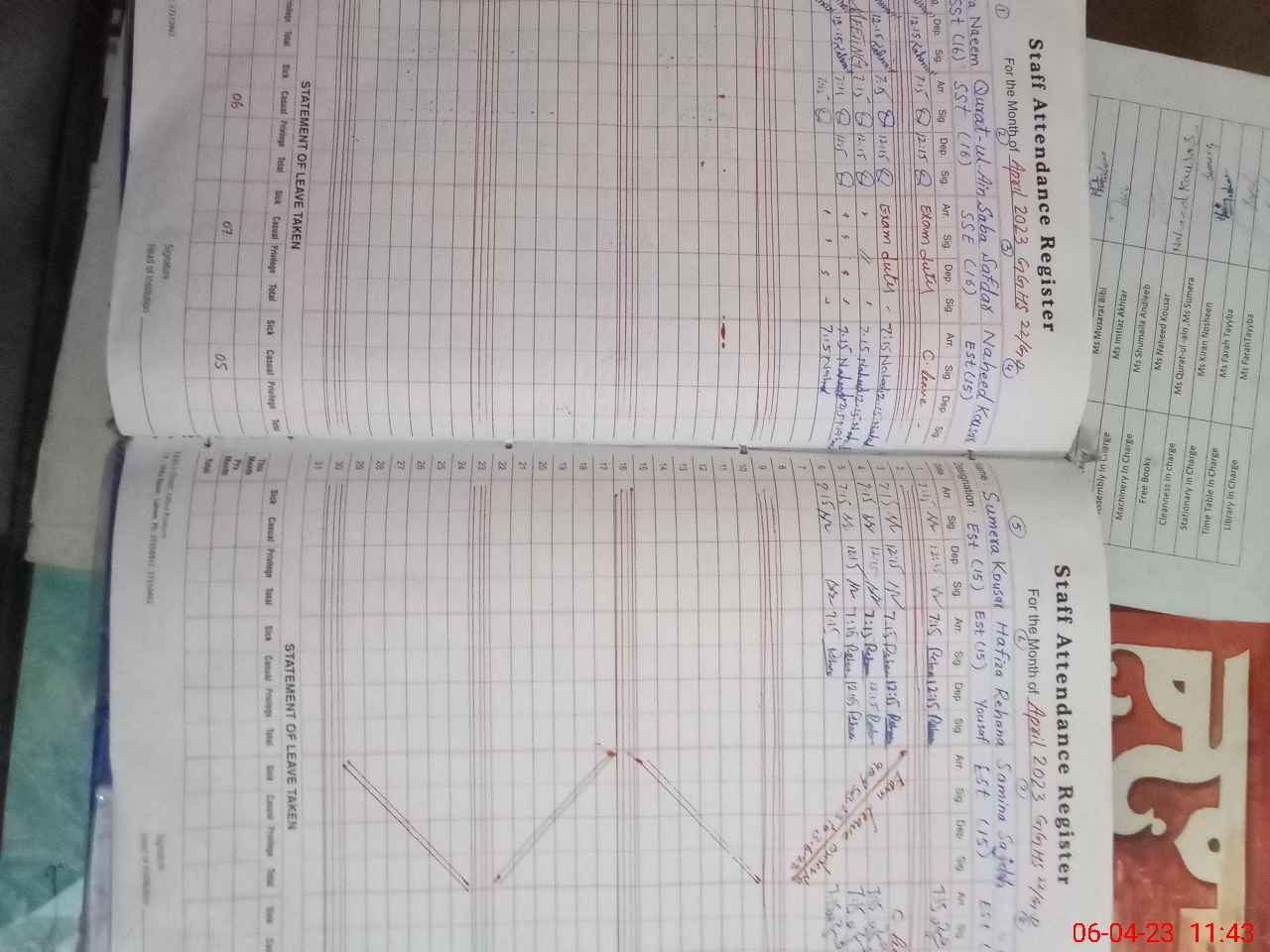 | Leave | Duty | Absent | Maternity | Medical | Ex- Pak |
