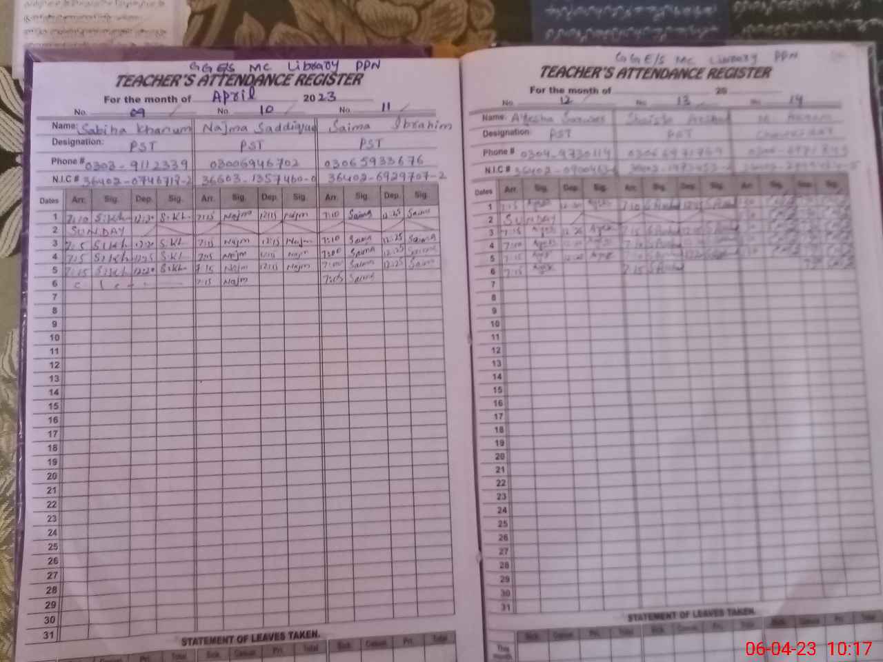 | CNIC | Full Name | Designation | R/C | Absence During Last Calender Month |
