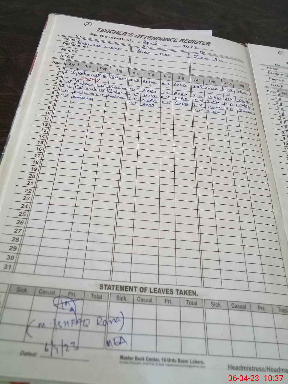 | Name: Zu**** Zi**** Designation: (School Headmaster's/Headmistress's) PST Phone/Cell Number: 03**** |