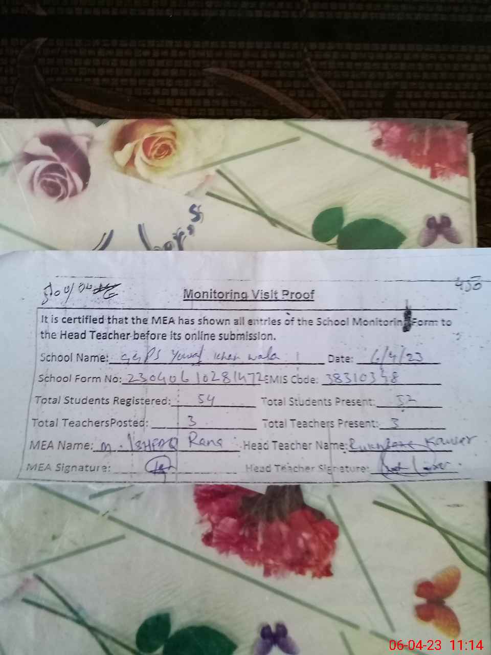 | EMIS Code: 38310348 | Name of School: GGPS YOUSUF KHAN WALA | |||