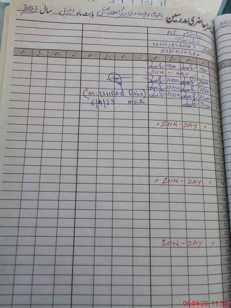 | 38**** | Al**** Hu**** Sh**** | PST | Regular | 0 | 0 | 0 | 0 | 0 | 0 | 0 | 0 | 0 | Exam Duty |
