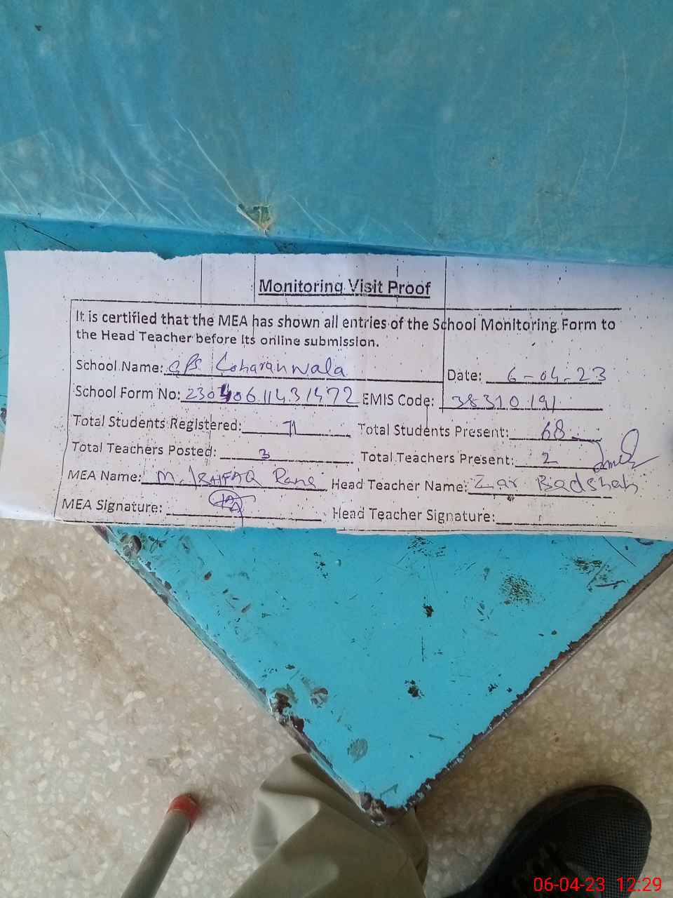 | EMIS Code: 38310191 | Name of School: GPS LOHARAN WALA | |||