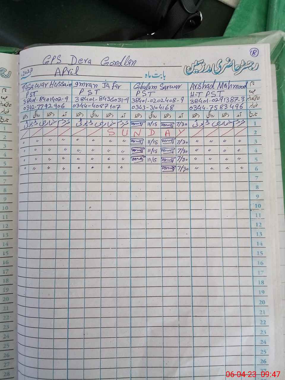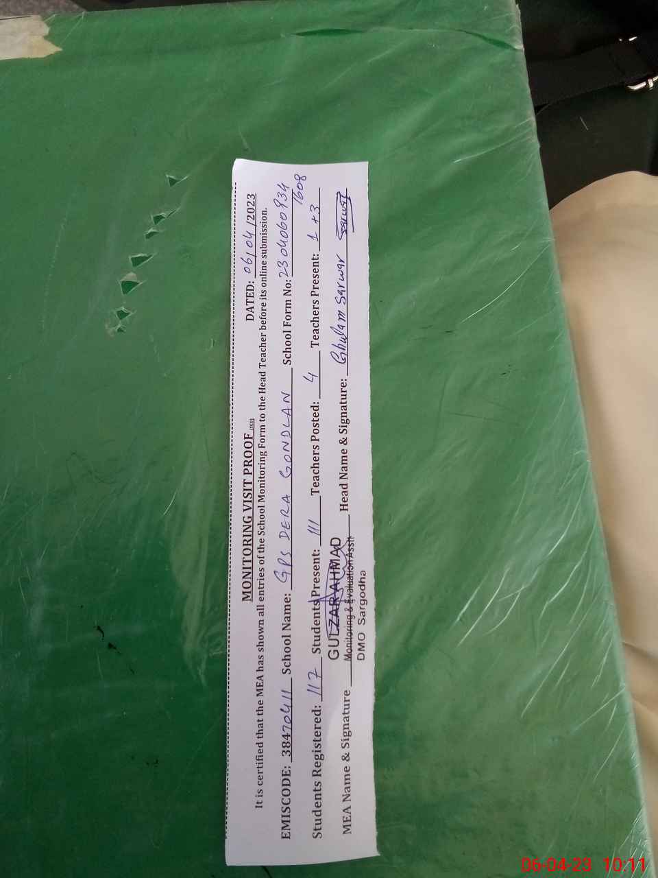 | EMIS Code: 38470411 | Name of School: GPS DERA GONDLAN | |||