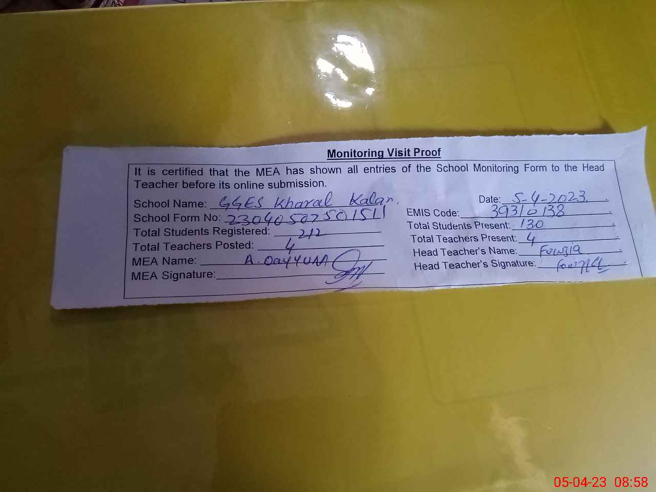 | EMIS Code: 39310138 | Name of School: GGES KHARAL KALAN | |||