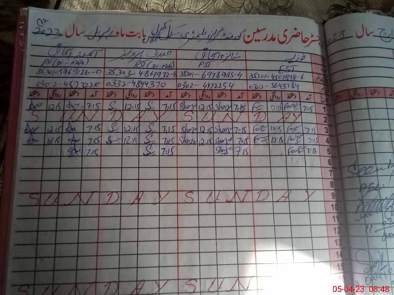 | Name: Uz**** Iq**** Designation: (School Headmaster's/Headmistress's) Sst Phone/Cell Number: 03**** |