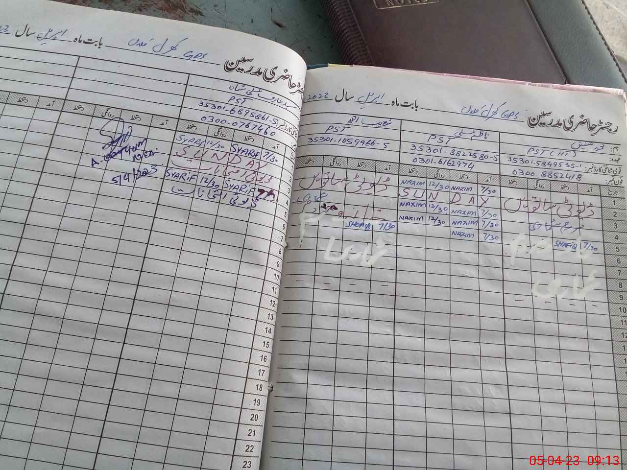 | Name: MU**** SH**** Designation: (School Headmaster's/Headmistress's) PST/ Phone/Cell Number: 03**** |