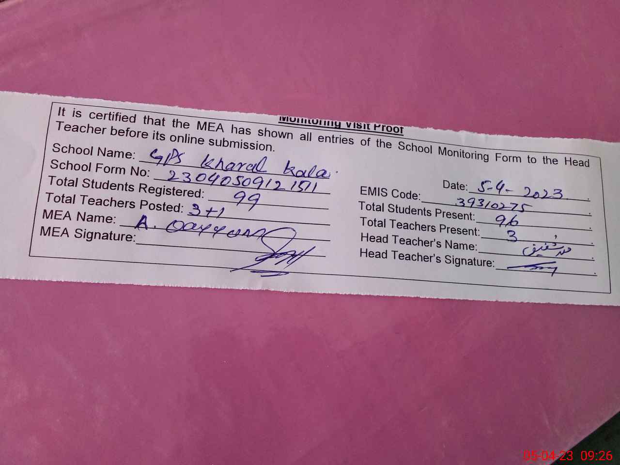 | EMIS Code: 39310275 | Name of School: GPS KHARAL KALAN | |||