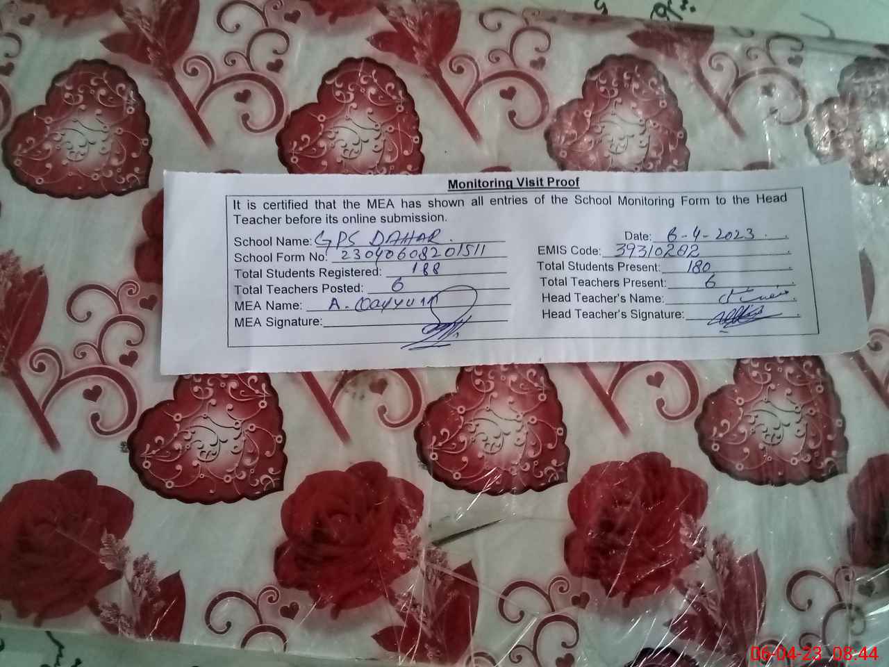 | Attendance Register | Head Teacher | MEA with School | Visit Proof |