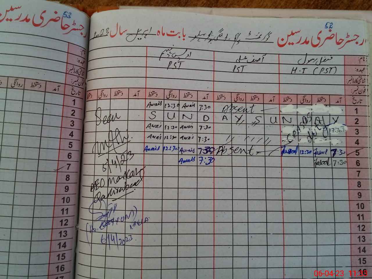 | Name: Fa**** Ra**** Designation: (School Headmaster's/Headmistress's) PST Phone/Cell Number: 03**** |