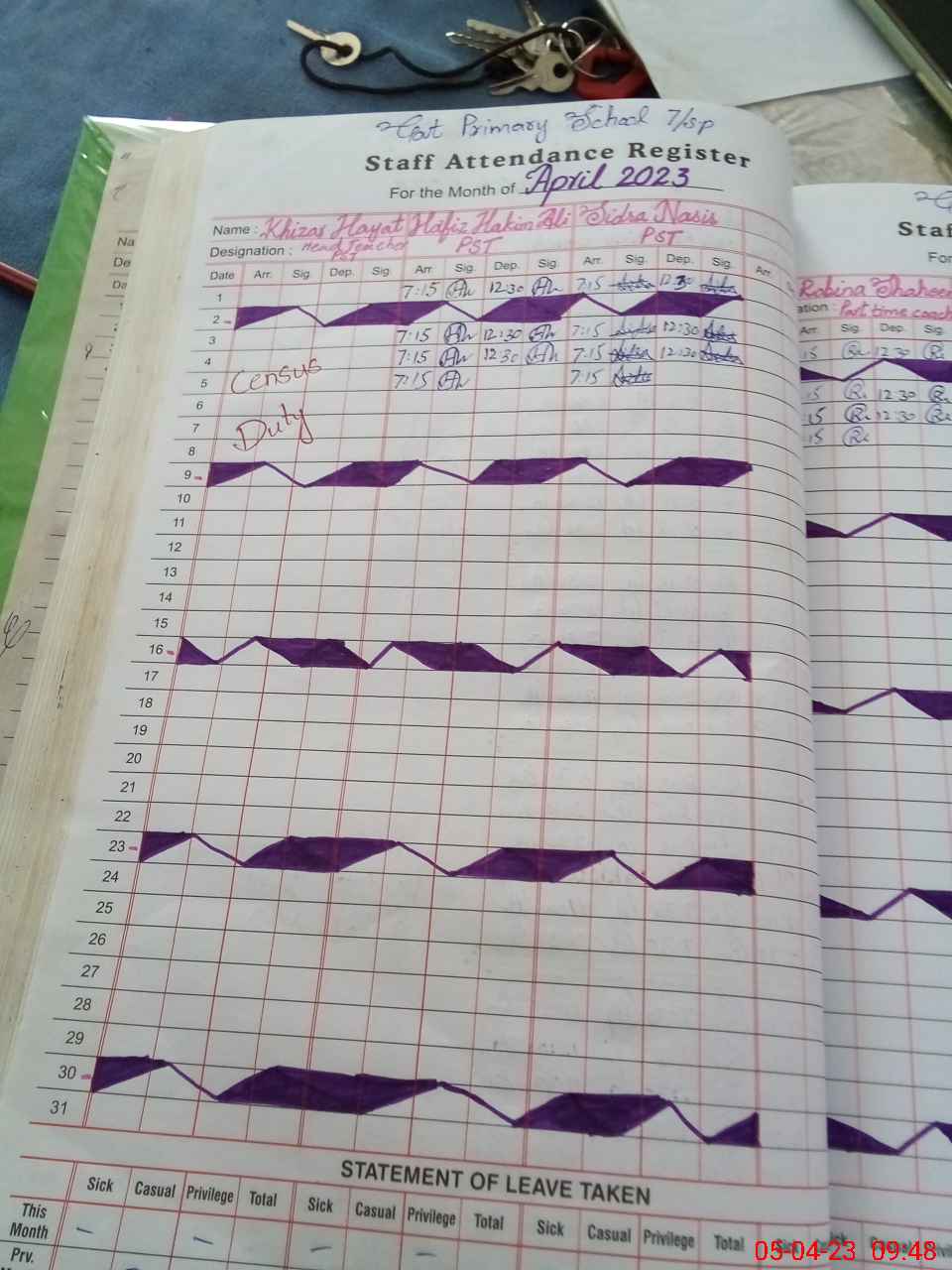 | Leave | Duty | Absent | Maternity | Medical | Ex- Pak |