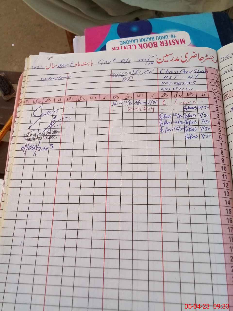 | Name: Ch**** Pe**** Sh**** Designation: (School Headmaster's/Headmistress's) PTC Phone/Cell Number: 03**** |