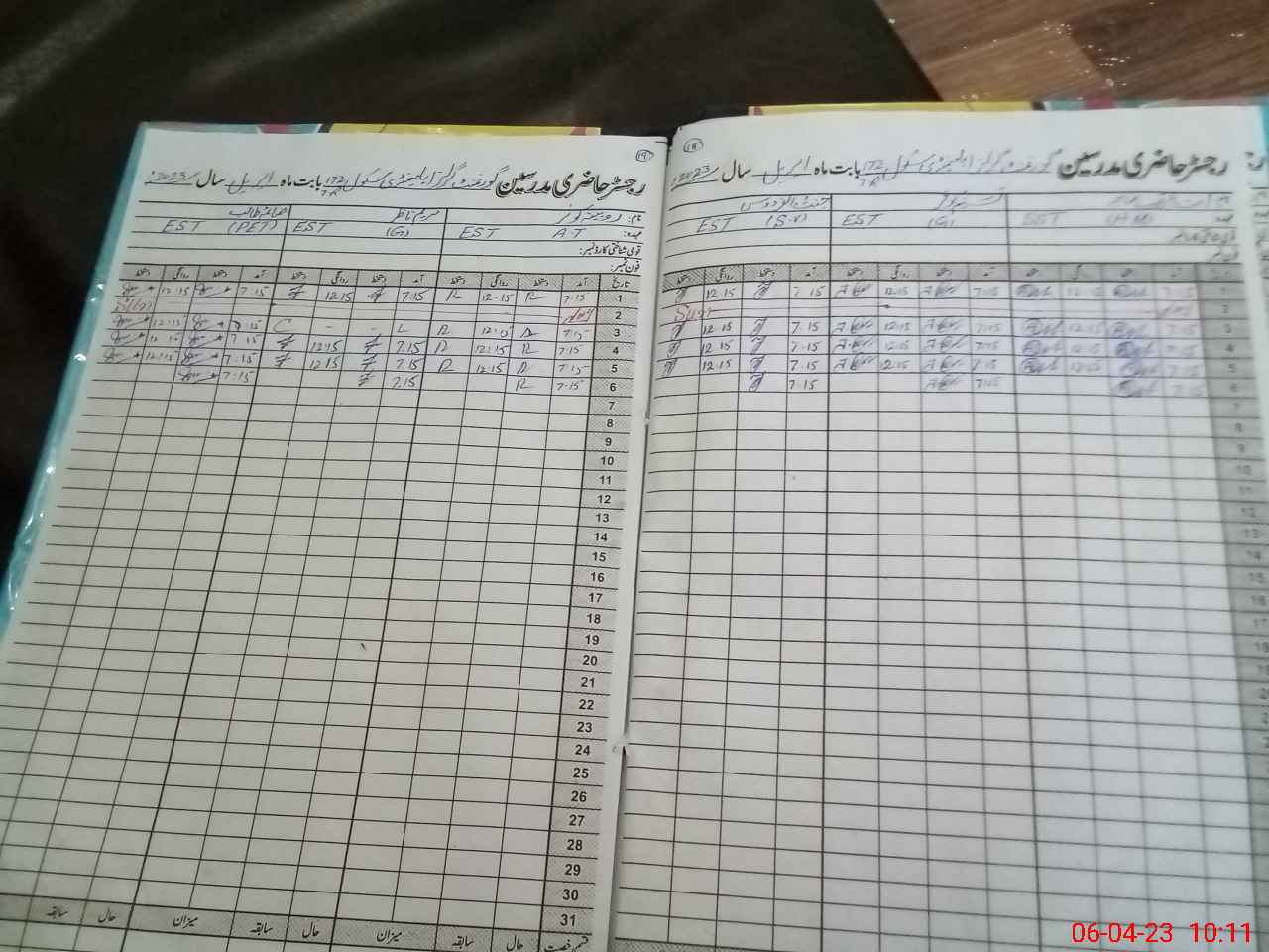 | CNIC | Full Name | Designation | R/C | Absence During Last Calender Month |