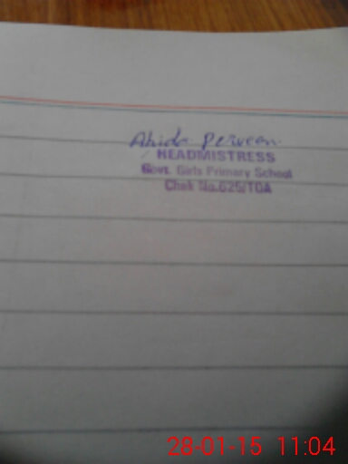 | Name: AB**** PE**** Designation: (School Headmaster's/Headmistress's) PST Phone/Cell Number: 03**** |