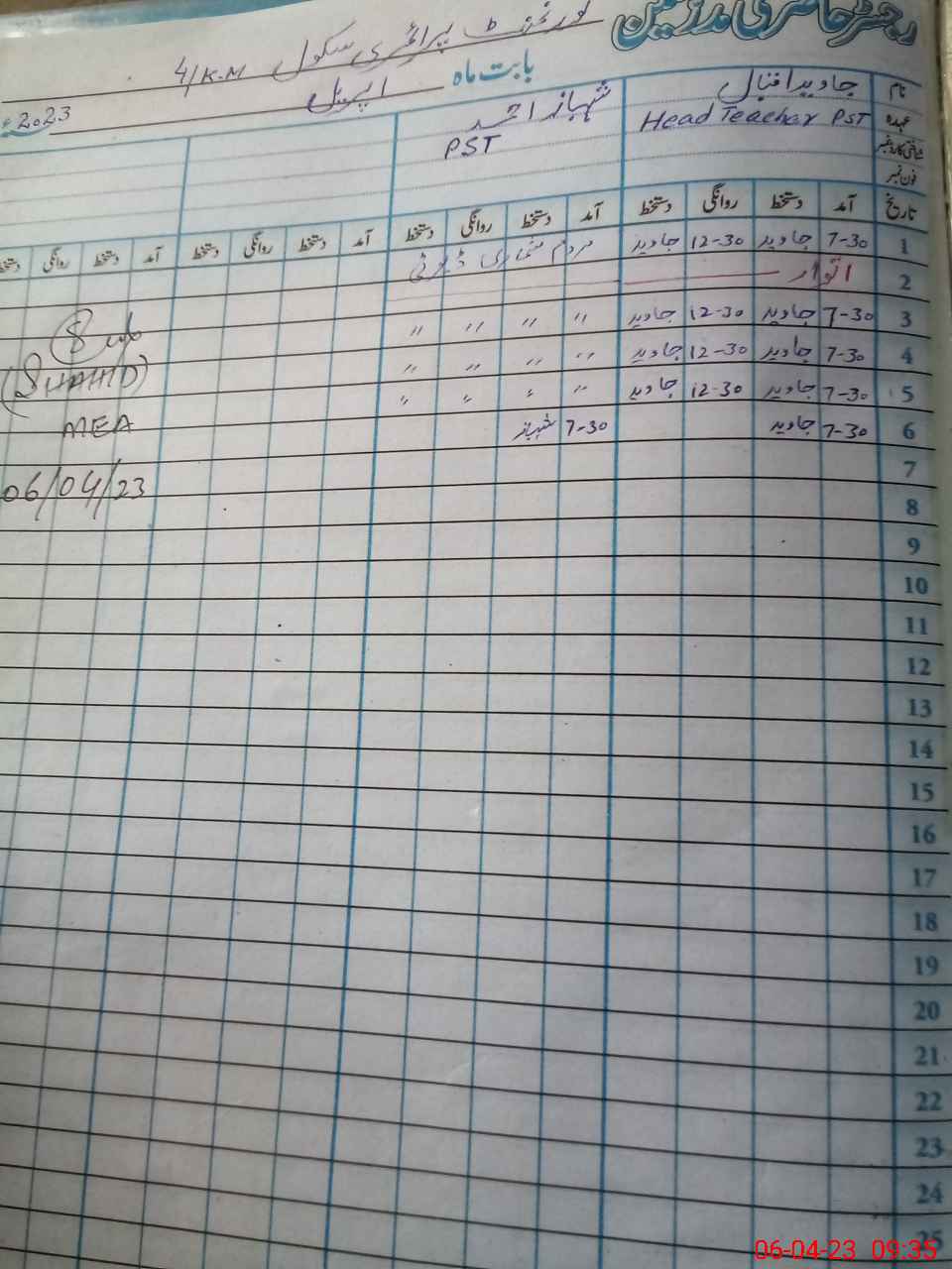 | Name: Ja**** Iq**** Designation: (School Headmaster's/Headmistress's) PST Phone/Cell Number: 03**** |