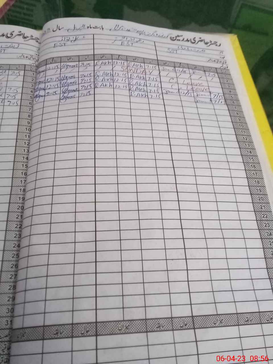 | CNIC | Full Name | Designation | R/C | Absence During Last Calender Month |