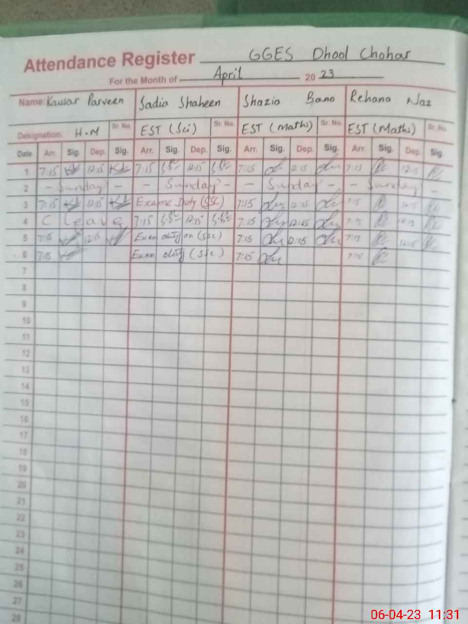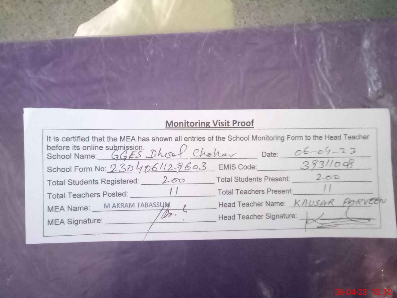 | EMIS Code: 39311008 | Name of School: GGES DHOOL CHOHAR | |||