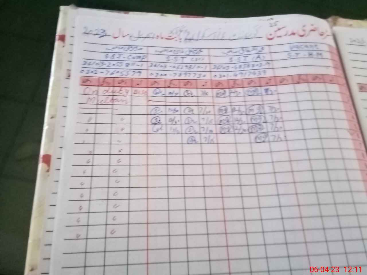 | 36**** | Mu**** Sa**** Na**** Kh**** | Regular | 0 | 31 | 0 | 0 | 0 | 0 | 0 | 0 | 0 | Exam Duty | |