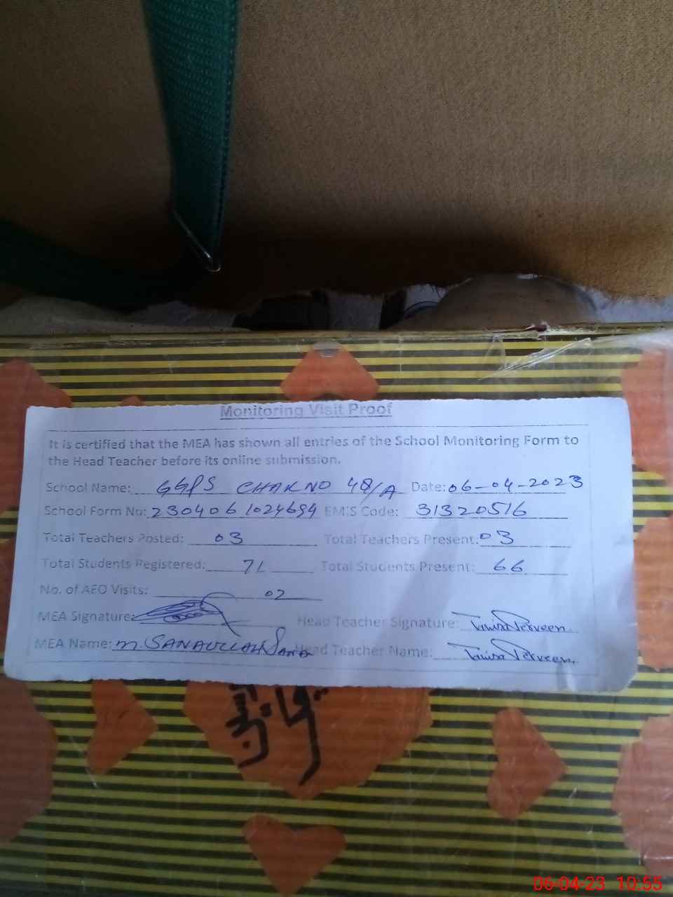 | EMIS Code: 31320516 | Name of School: GGPS CHAK NO.48/A | |||