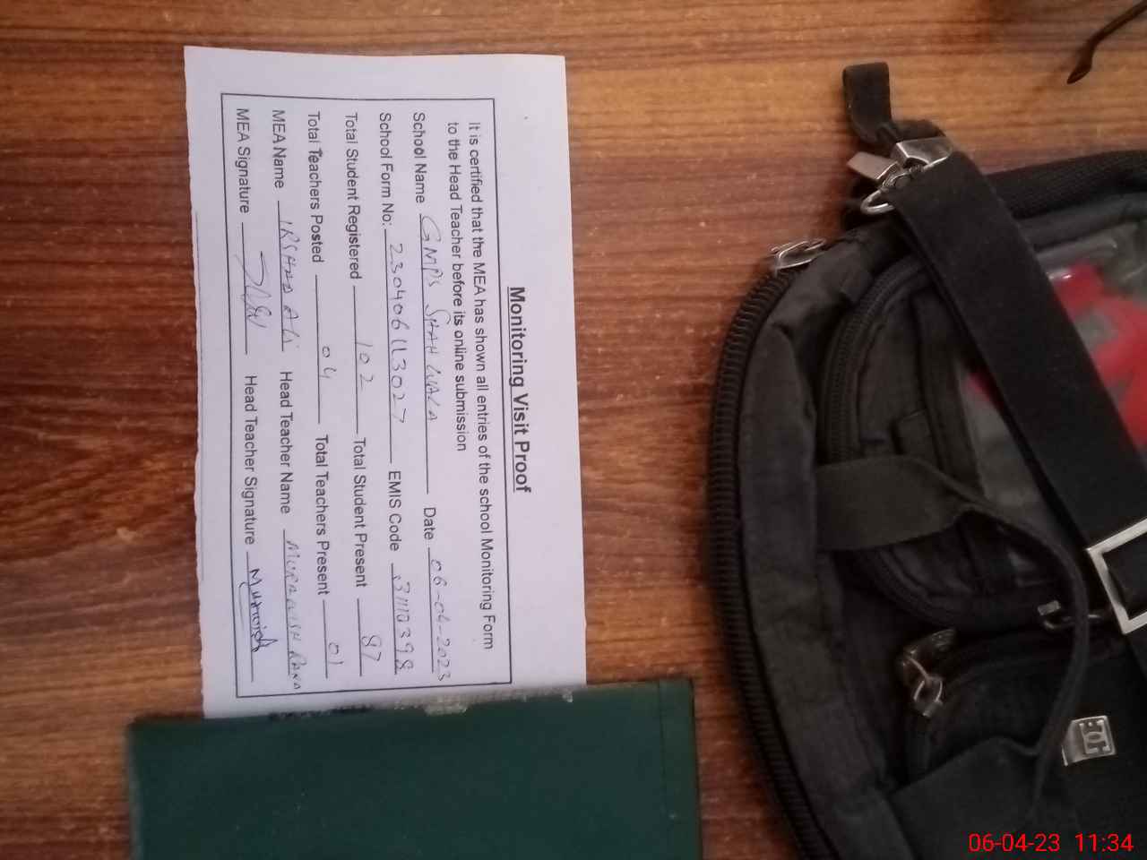 | Attendance Register | Head Teacher | MEA with School | Visit Proof |