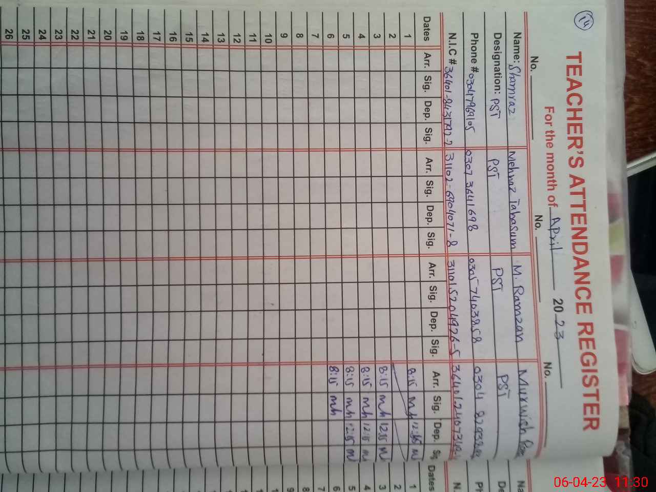 | Name: Sh**** Mu**** Designation: (School Headmaster's/Headmistress's) ESE Arts Phone/Cell Number: 03**** |