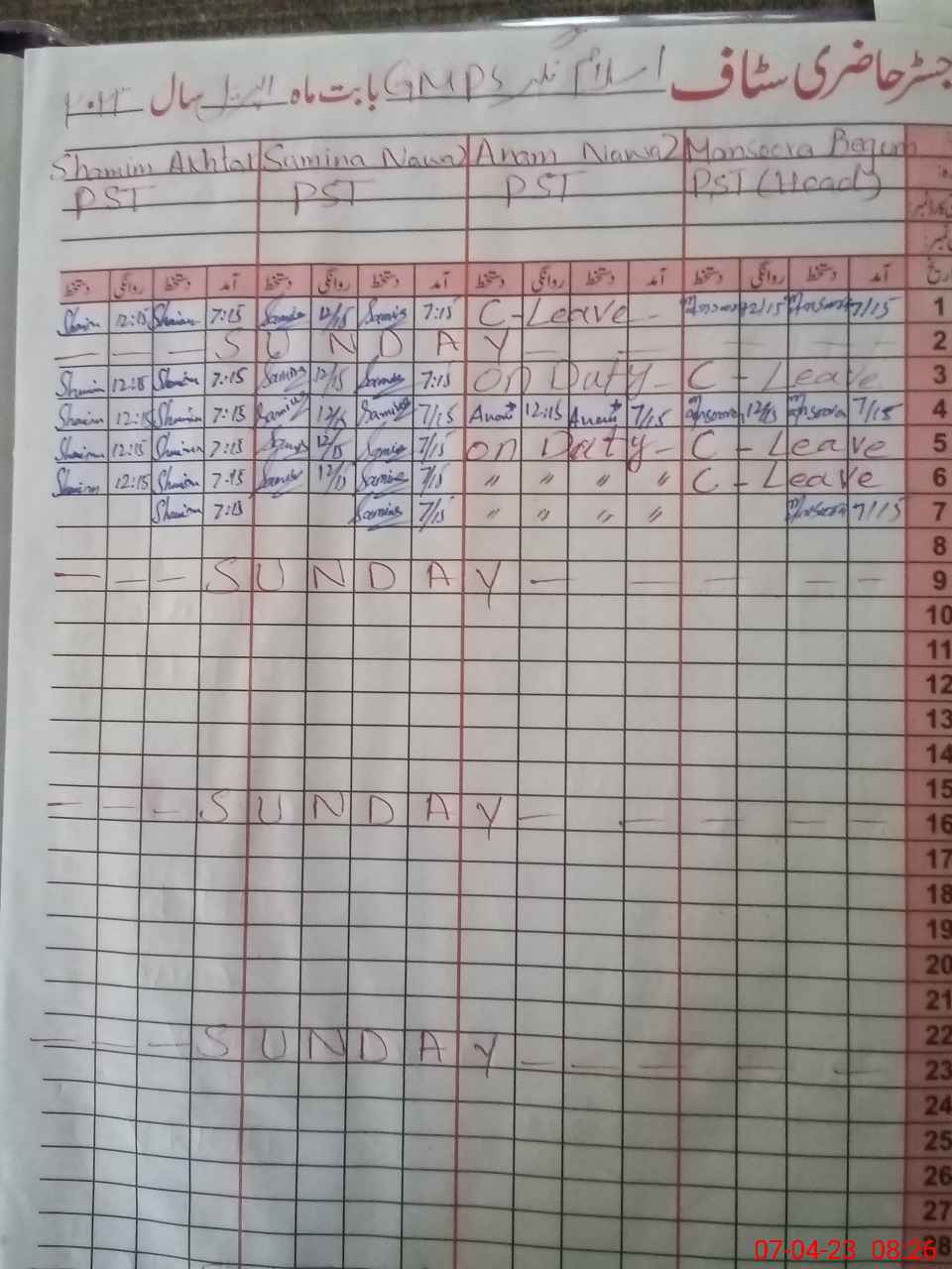 | 33**** | Ha**** Ta**** Pa**** | PST | Regular | 0 | 0 | 0 | 0 | 0 | 0 | 0 | 0 | 0 | Maternity |