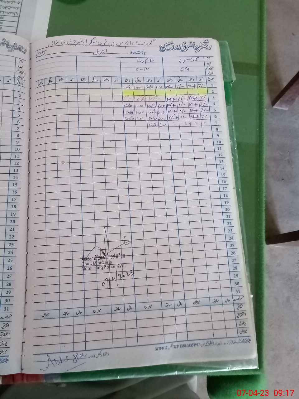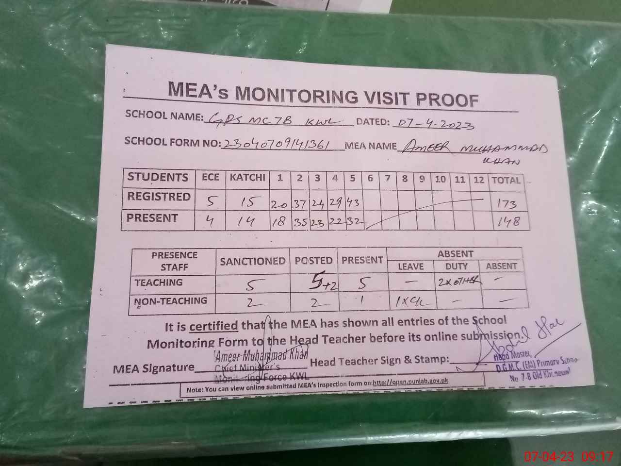 | EMIS Code: 36420632 | Name of School: GPS MC 7-B KHANEWAL | |||