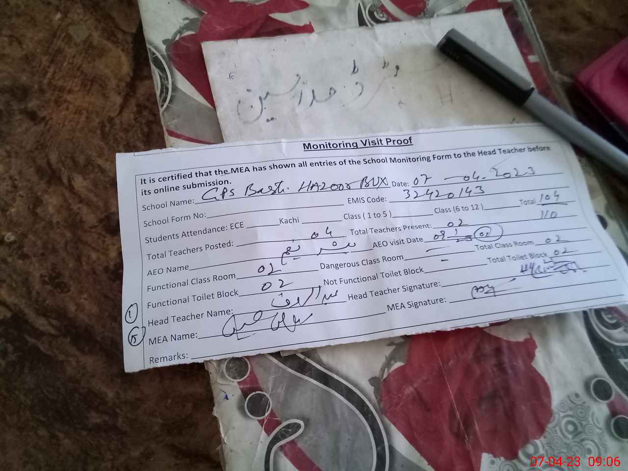 | EMIS Code: 32420143 | Name of School: GPS BASTI HAZOOR BUX | |||