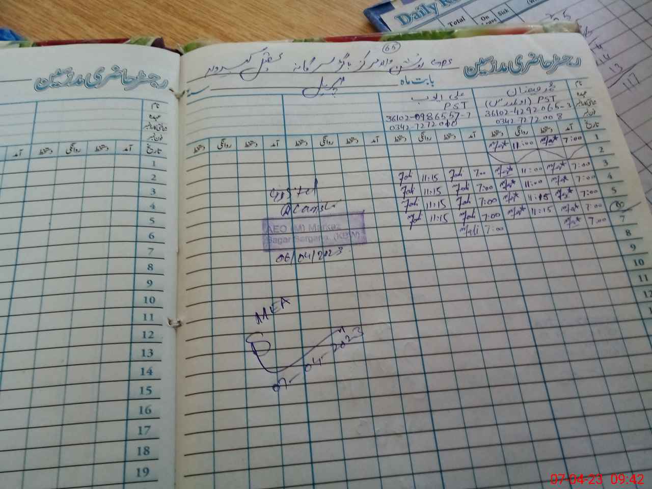 | Name: M.FA**** Designation: (School Headmaster's/Headmistress's) PST Phone/Cell Number: 03**** |