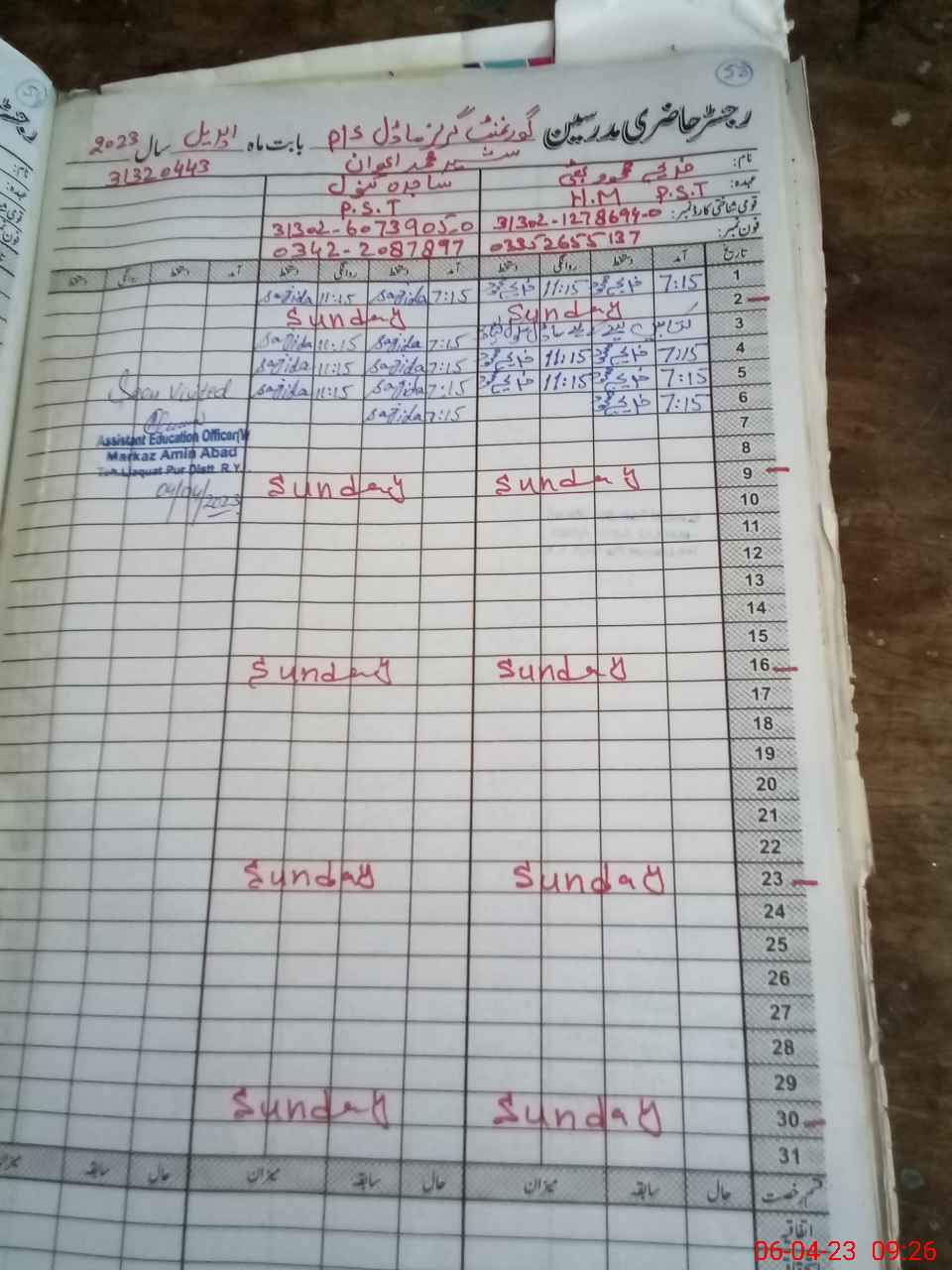 | EMIS Code: 31320443 | Name of School: GMPS SHER MUHAMMAD AWAN | |||