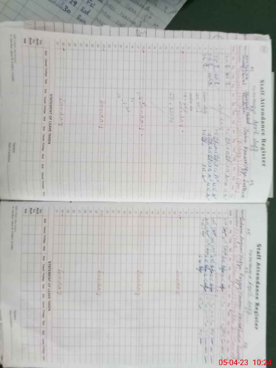 | Leave | Duty | Absent | Maternity | Medical | Ex- Pak |