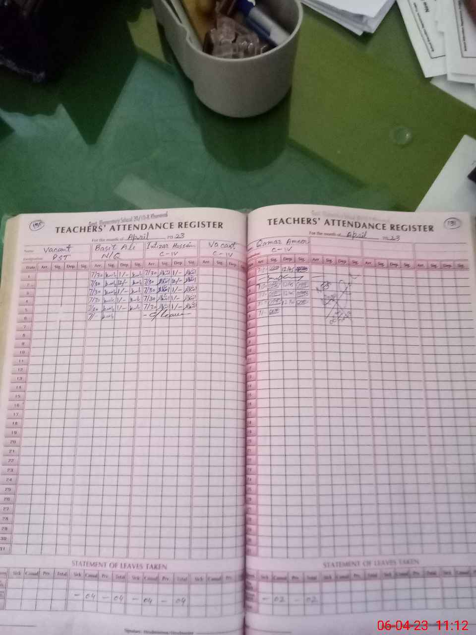 | Leave | Duty | Absent | Maternity | Medical | Ex- Pak |