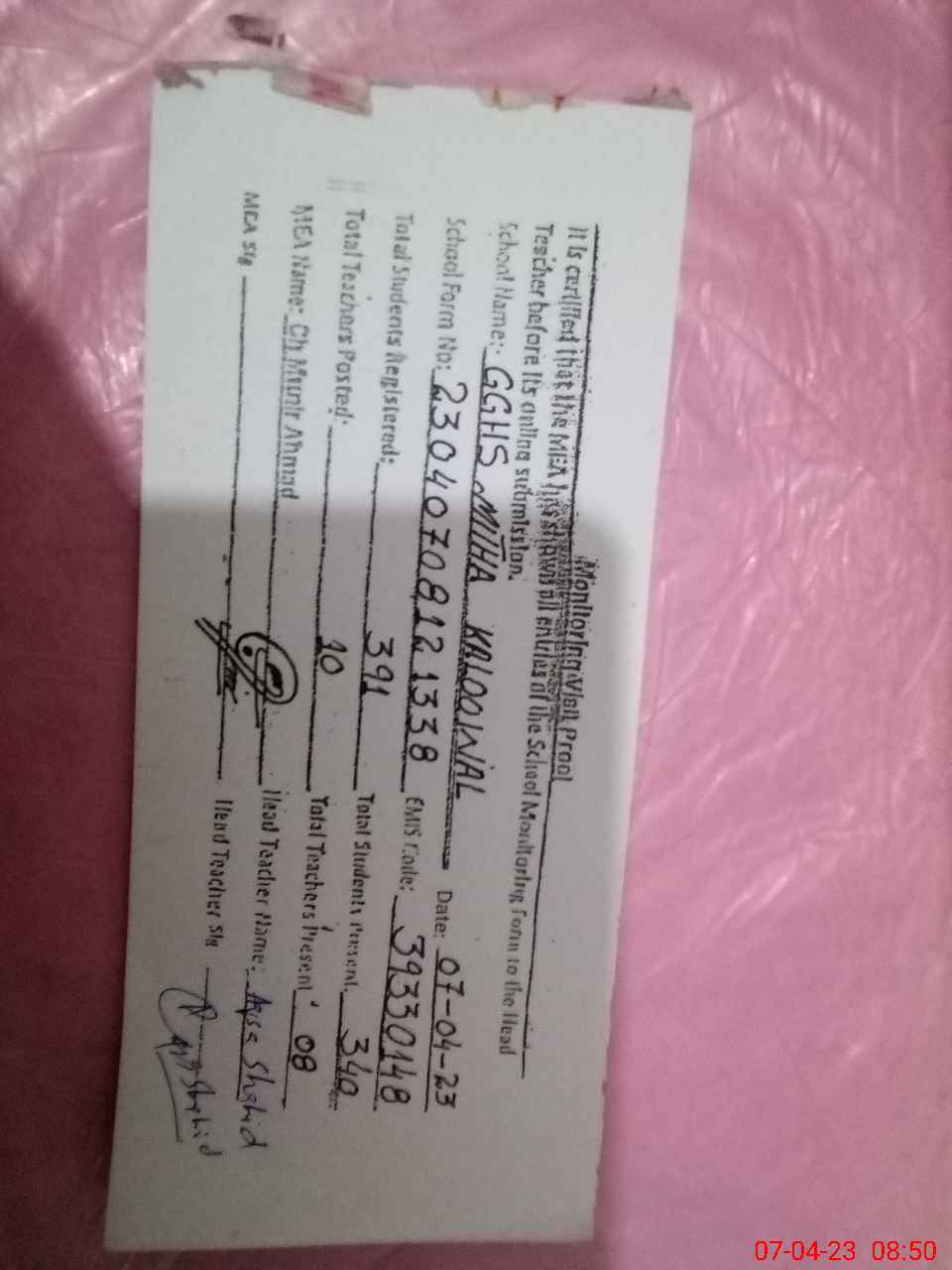 | EMIS Code: 39330148 | Name of School: GGHS MITTHA KALOWAL | |||