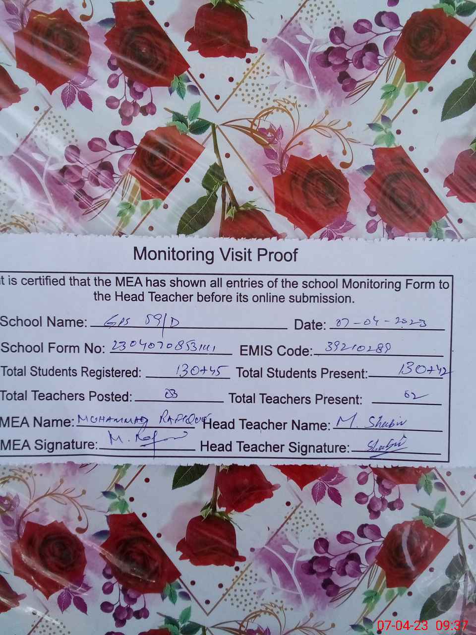 | EMIS Code: 39210289 | Name of School: GPS 59/D | |||