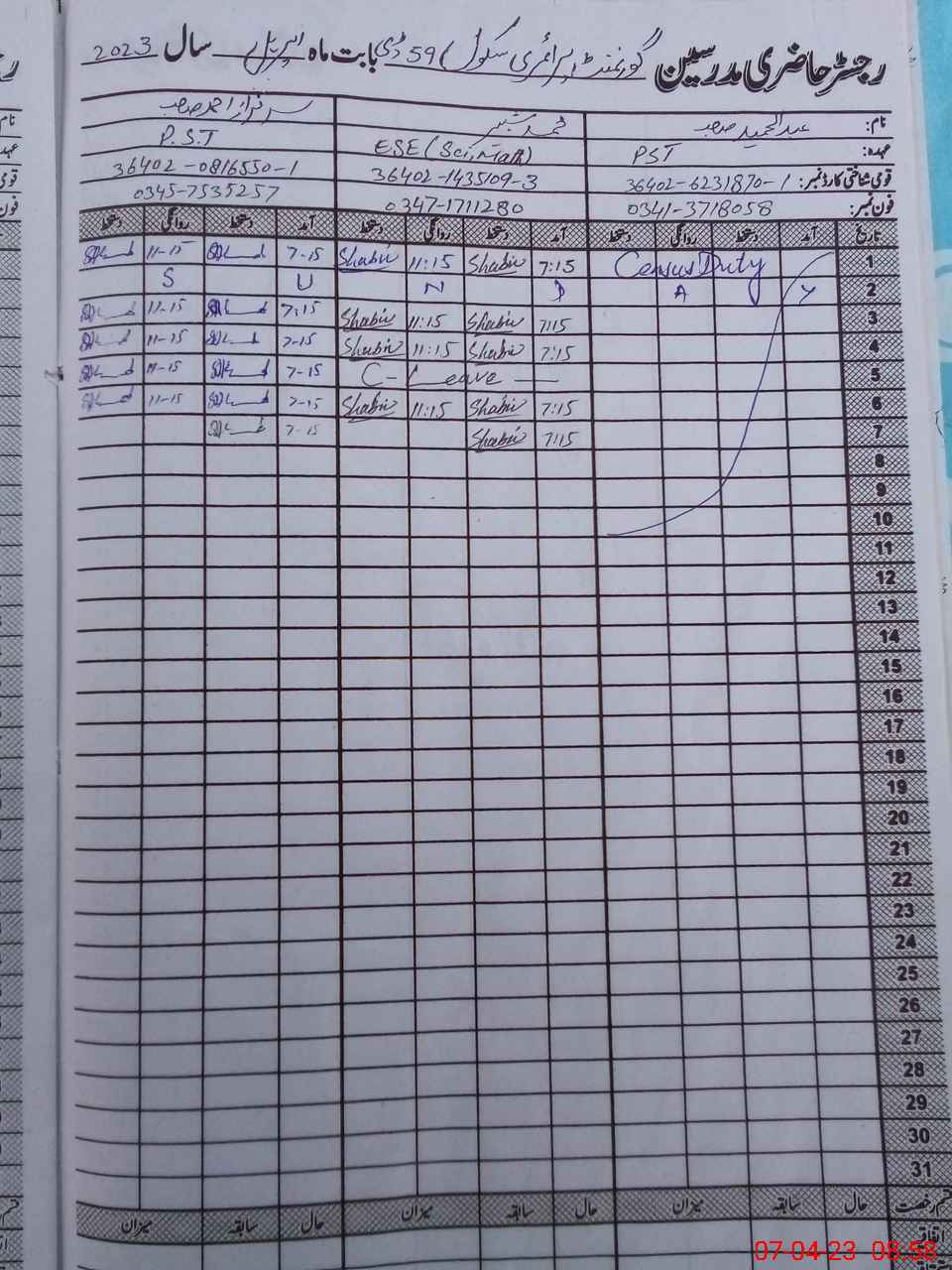 | Name: AB**** HA**** Designation: (School Headmaster's/Headmistress's) PST Phone/Cell Number: 03**** |