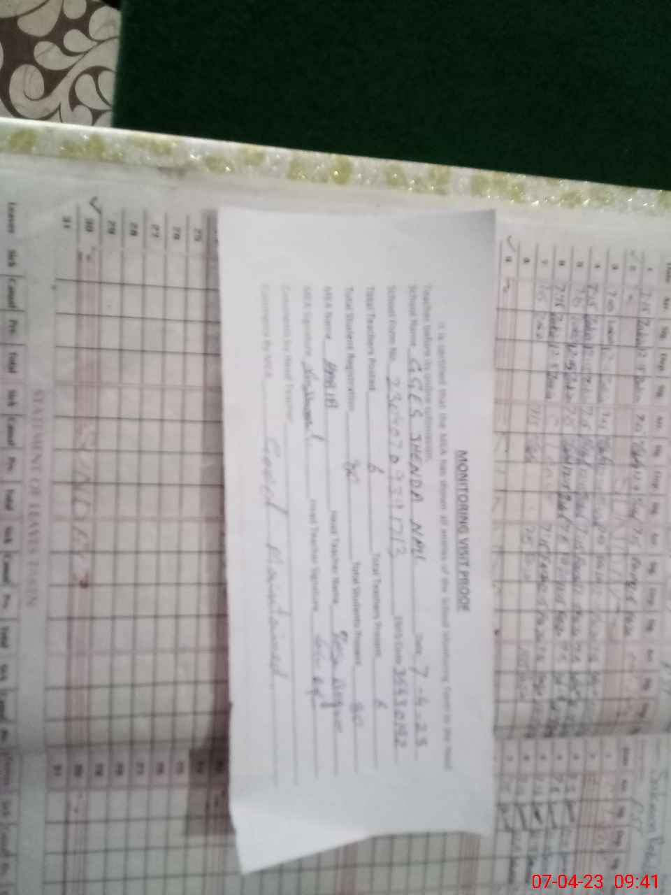 | Attendance Register | Head Teacher | MEA with School | Visit Proof |