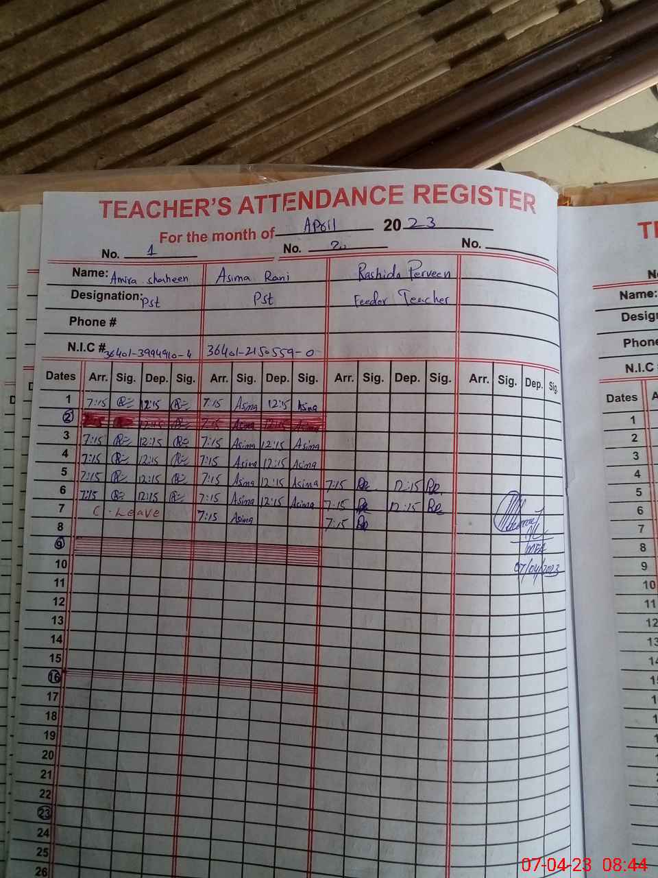| Name: AM**** SH**** Designation: (School Headmaster's/Headmistress's) PST Phone/Cell Number: 03**** |