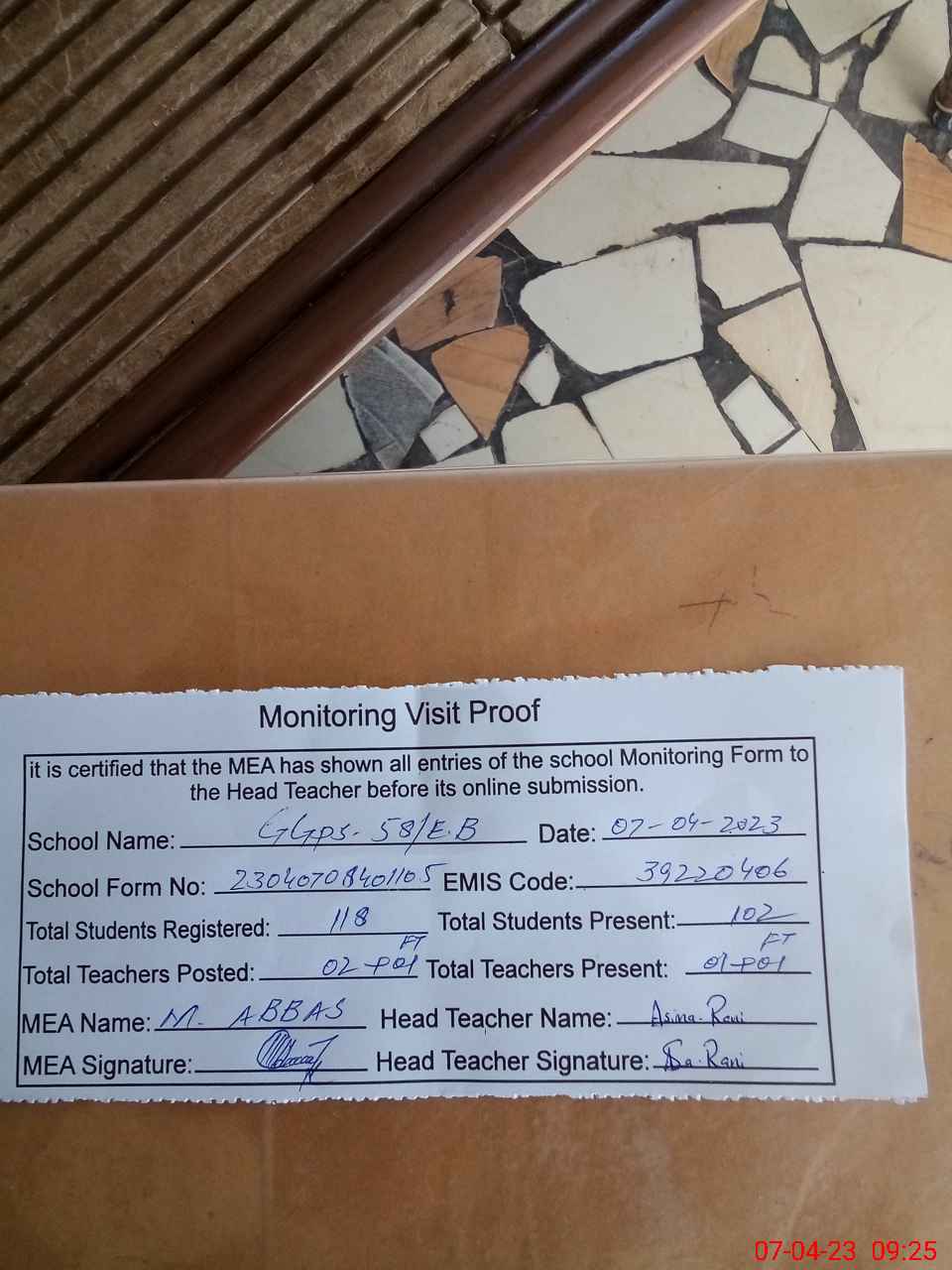 | EMIS Code: 39220406 | Name of School: GGPS 58 EB PO 58 EB | |||