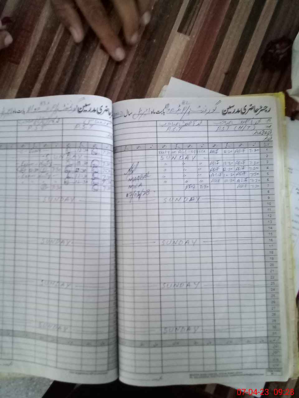 | CNIC | Full Name | Designation | R/C | Absence During Last Calender Month |