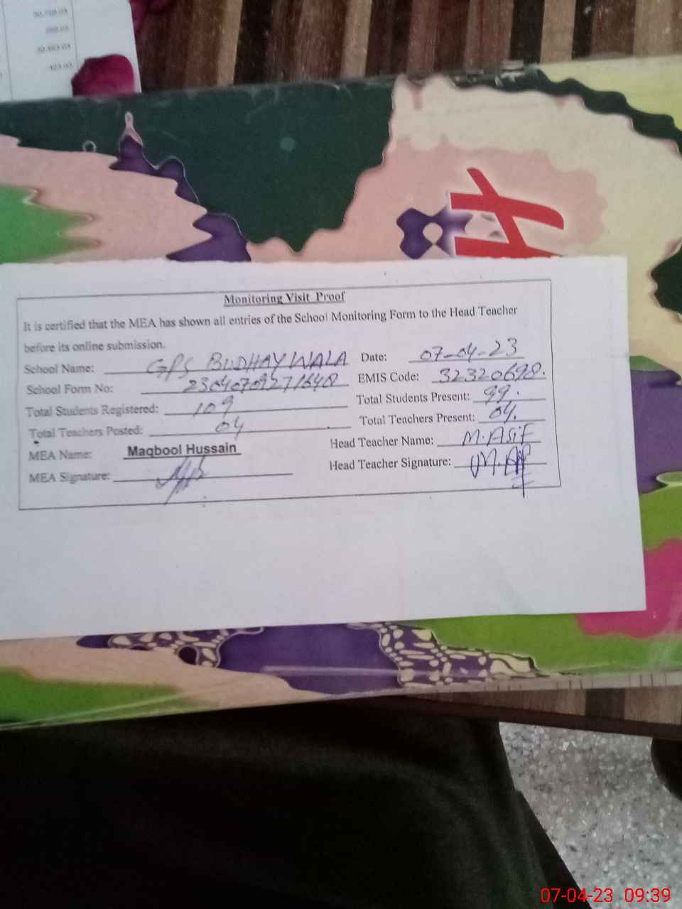 | EMIS Code: 32320698 | Name of School: GPS BUDHAY WALA | |||