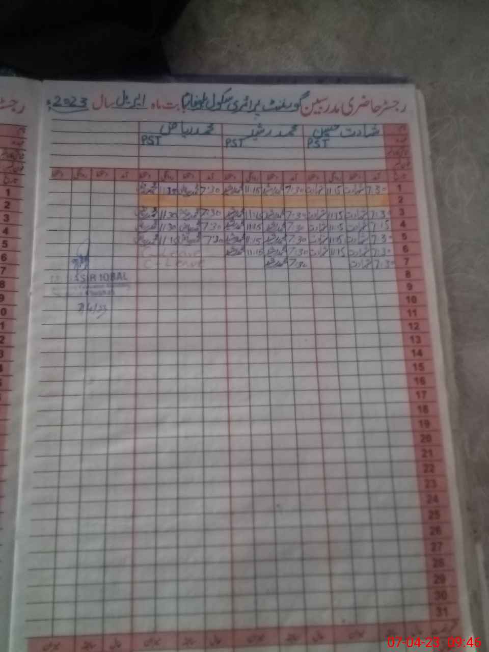 | Name: Sh**** Hu**** Designation: (School Headmaster's/Headmistress's) PST Phone/Cell Number: 03**** |