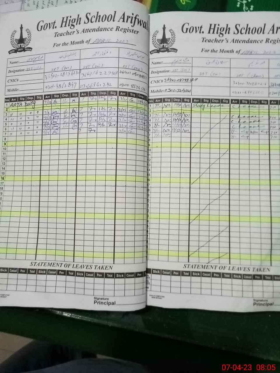 | CNIC | Full Name | Designation | R/C | Absence during last cal. month |