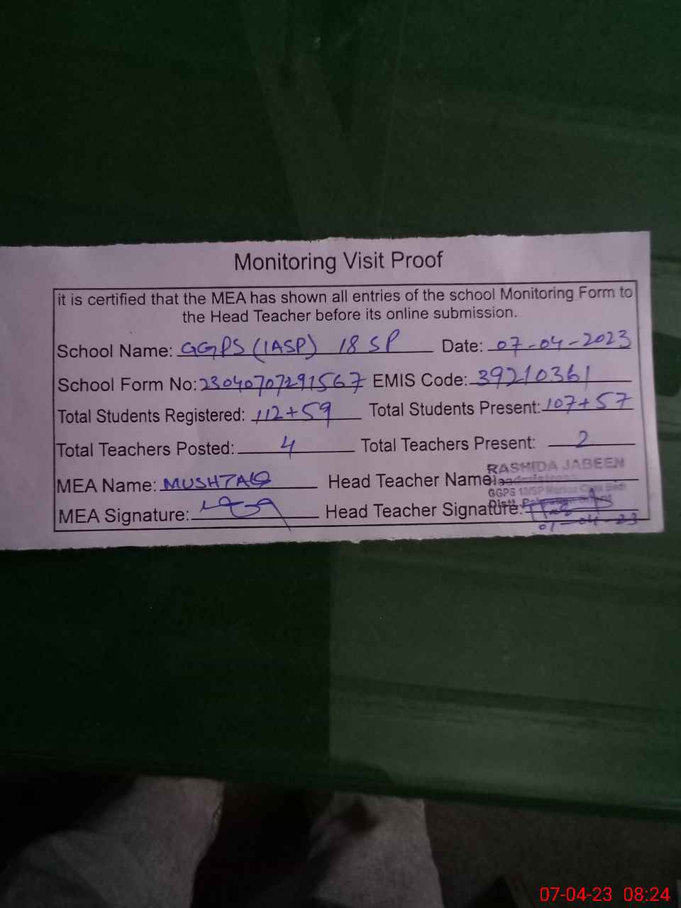 | EMIS Code: 39210361 | Name of School: GGPS CHAK 18 SP | |||