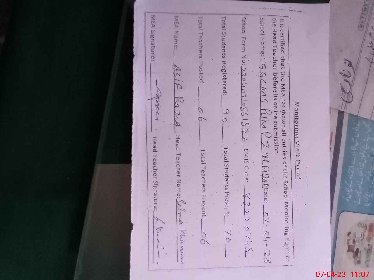 | EMIS Code: 33220745 | Name of School: GGCMS PUMP ZULFIQAR | |||