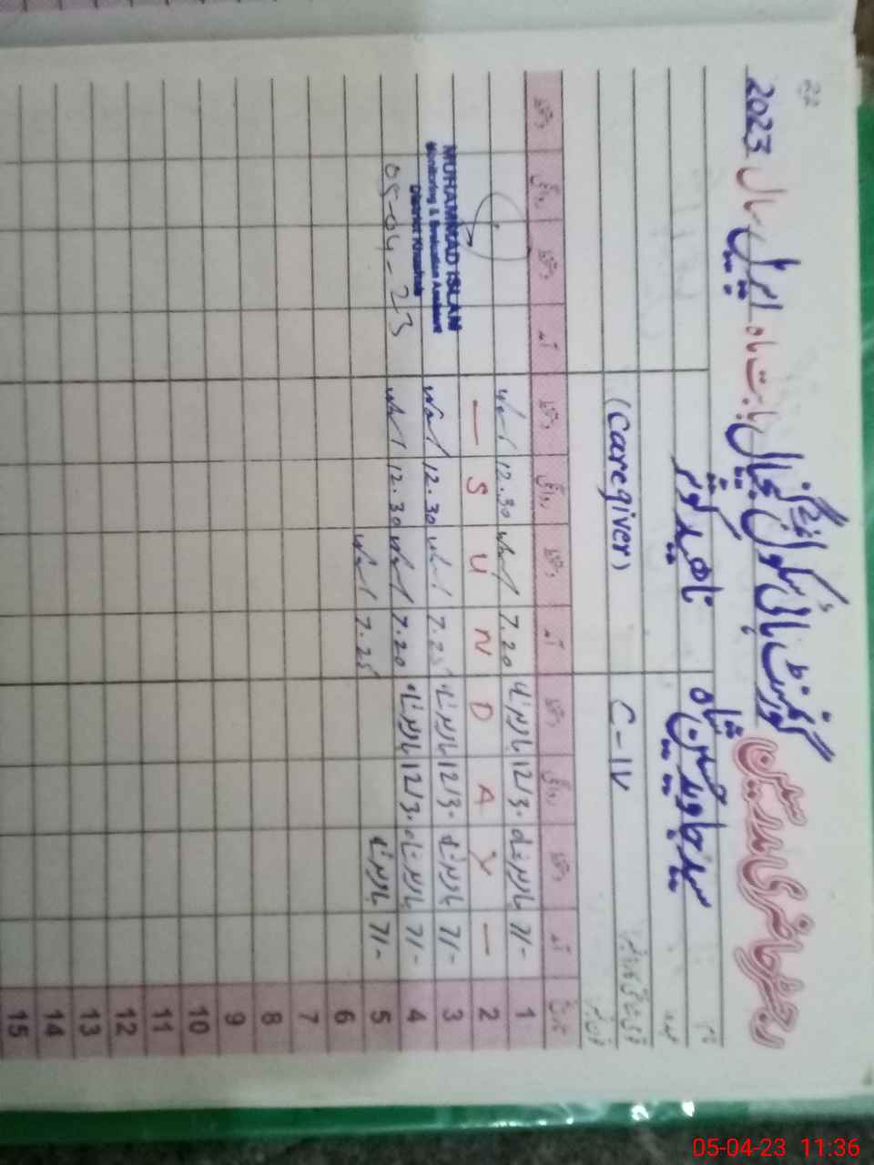 | CNIC | Full Name | Designation | R/C | Absence During Last Calender Month |