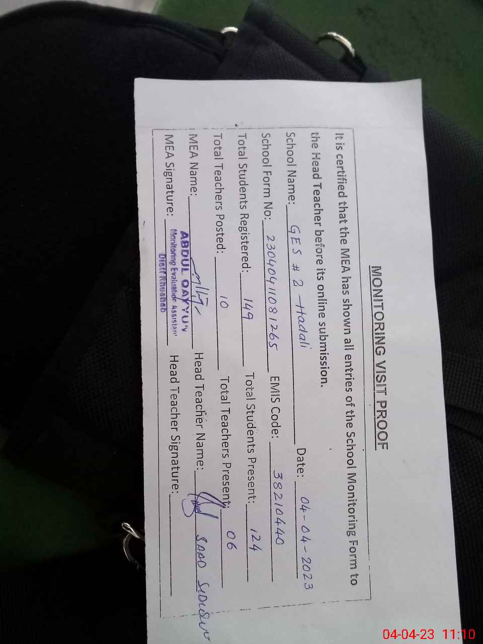 | EMIS Code: 38210440 | Name of School: GES NO. 2 HADALI | |||