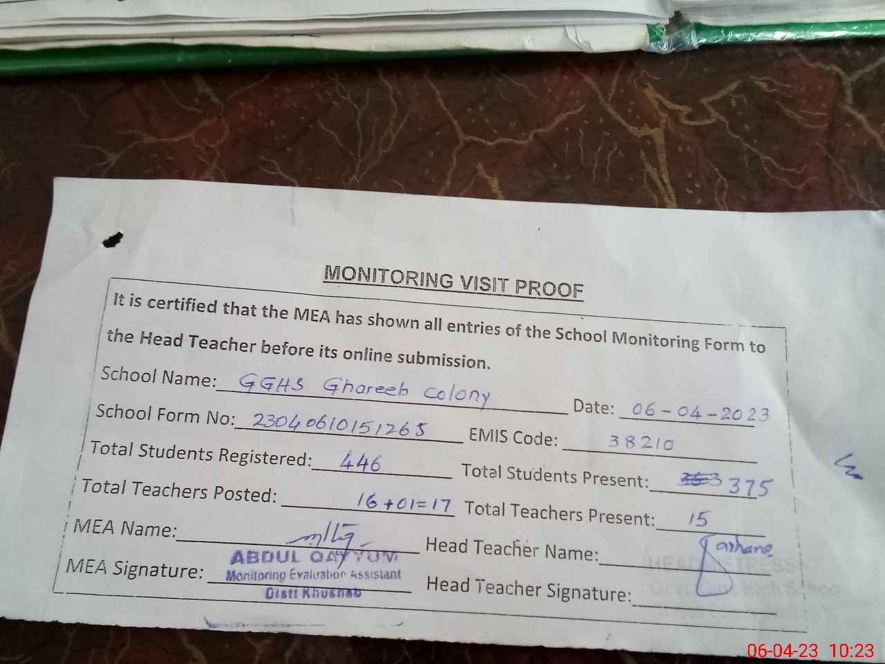 | EMIS Code: 38210960 | Name of School: GGHS GHAREEB COLONY JAUHARABAD | |||