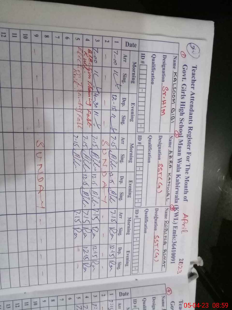 | Name: Fo**** Sa**** Designation: (School Headmaster's/Headmistress's) Sr Head Mistress Phone/Cell Number: 03**** |