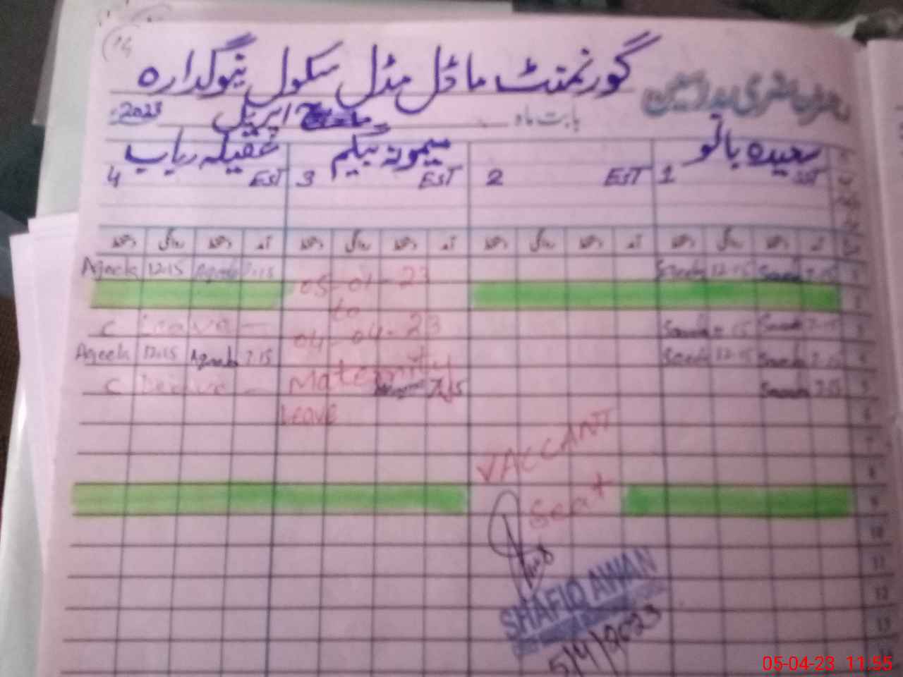 | Remarks (Use Separate Page if Required): Two teachers Asia Iqbal and Raza shah were not present in the school but attendance register showing Present | |||||