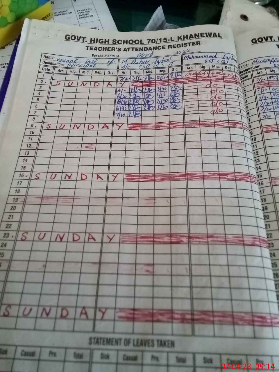 | Name: MAz**** Iq**** Designation: (School Headmaster's/Headmistress's) SST CS Phone/Cell Number: 03**** |